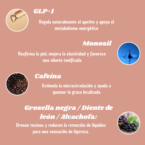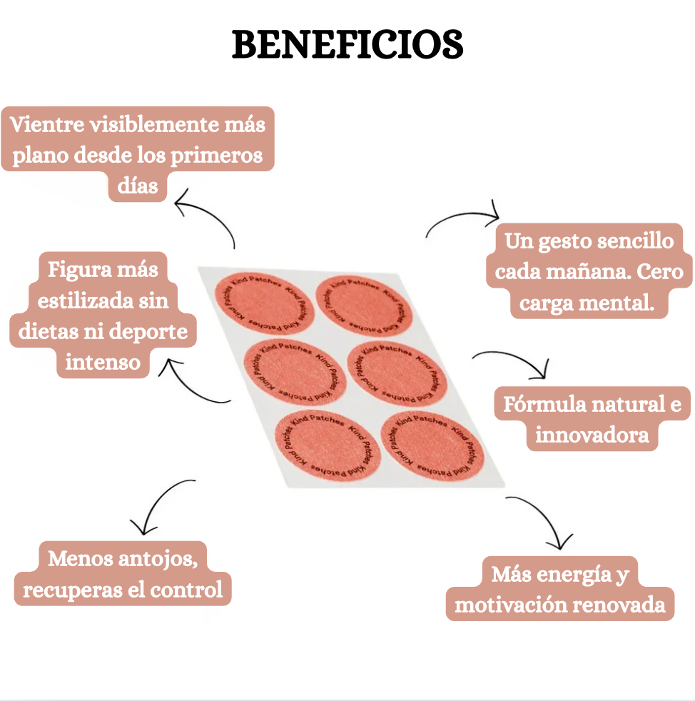 Gracias a su tecnología transdérmica, cada parche libera gradualmente ingredientes naturales que estimulan el metabolismo, reducen el apetito y favorecen el drenaje.